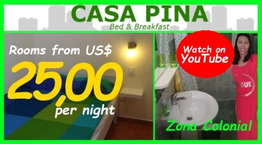 in the Colonial town, zona colonial, in Santo Domingo and it's situated in the heart of the old own. Now we offer one week in double room for just US $ 195,00. You have 3 minutes walk to the Malecón and 5 minutes to El Conde, the most famous street in Santo Domingo. Casa Pina offers rooms from US$ 25,00 per night in an excellent location in the Colonial Zone, between El Conde and the Malecón. It has free Internet wifi available and in the lobby you find coffee, bar and cable TV with more than 100 channels. For long time rent we always have discount for you.